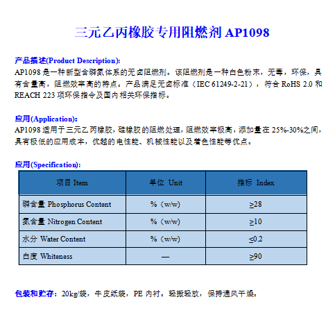 三元乙丙橡膠專用阻燃劑AP1098 2022-4-18 本文被閱讀 2329 次